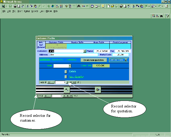 To create or update a customer particular, you need to have the form Main menu opened (see section 4.3). Once the form Main menu appears, click on Quotations and Invoices and the following screen will appear.